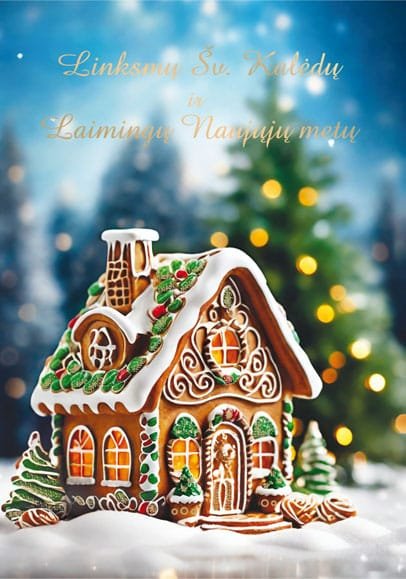 Standartinio formato Kalėdinis Naujametinis dvigubas atvirukas be voko.