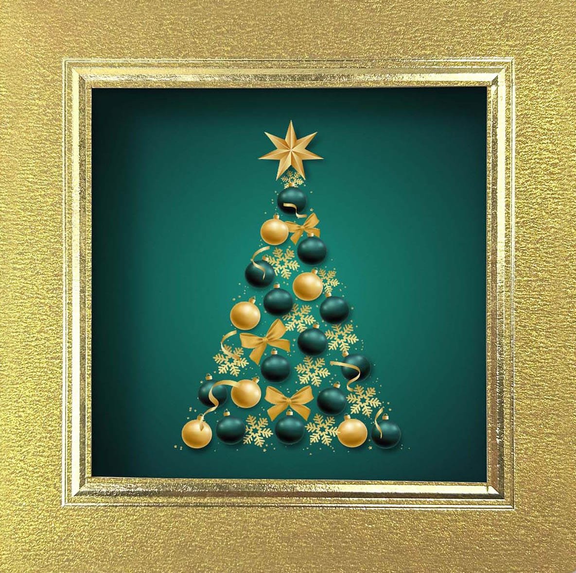 13,5 x13,5 cm. Dvigubas dekoratyvinio popieriaus atvirukas su lazeriniu išpjovimu, aukso folijos papuošimais.